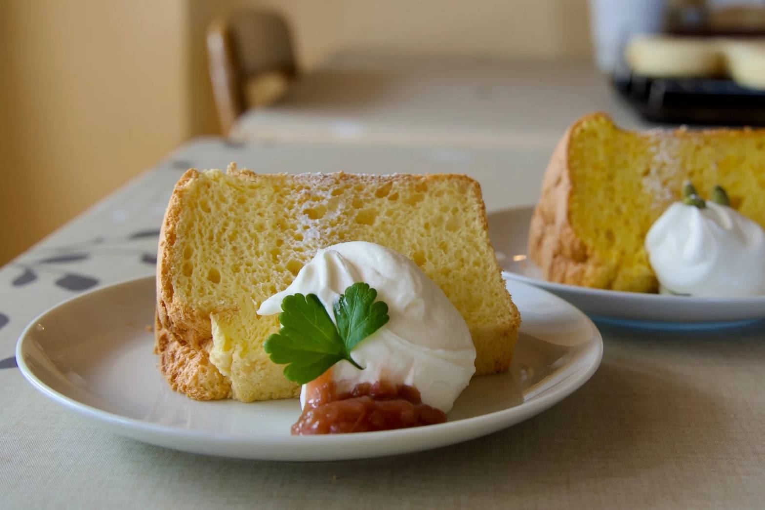 卵は富良野産「さくらたまご」、小麦粉は上富良野産「きたほなみ」、砂糖は十勝産「てんさい糖」、牛乳は十勝産、米油だけは道外産です。香料など添加物はいっさい使用しておりません。ふんわり優しい卵の香りのするふんわりしっとりなシフォンケーキです。冷蔵にてお届いたします。ぜひ届いたその日のうちに、お早めにお召し上がりください。 直径約17センチ×高さ約10センチ