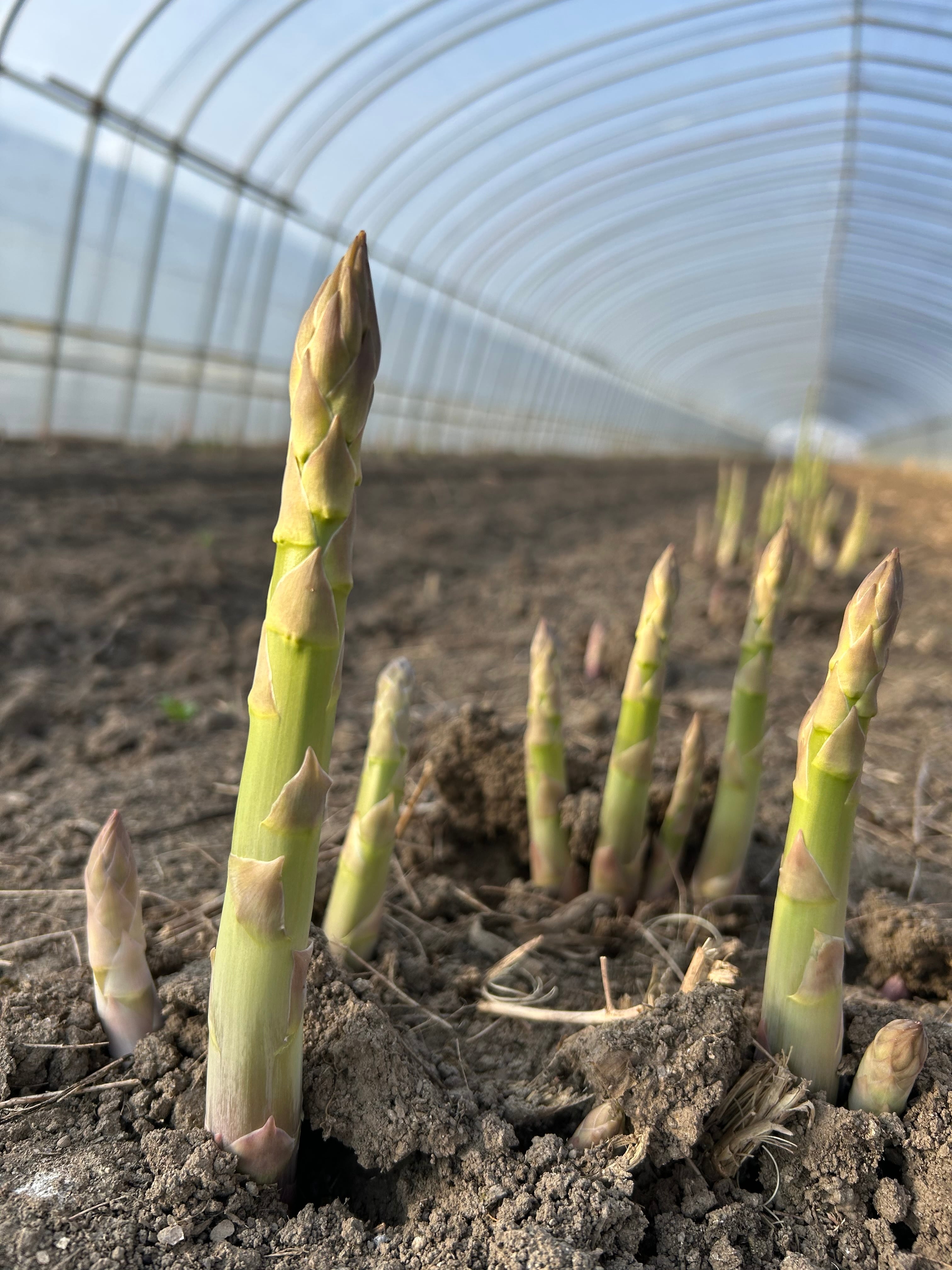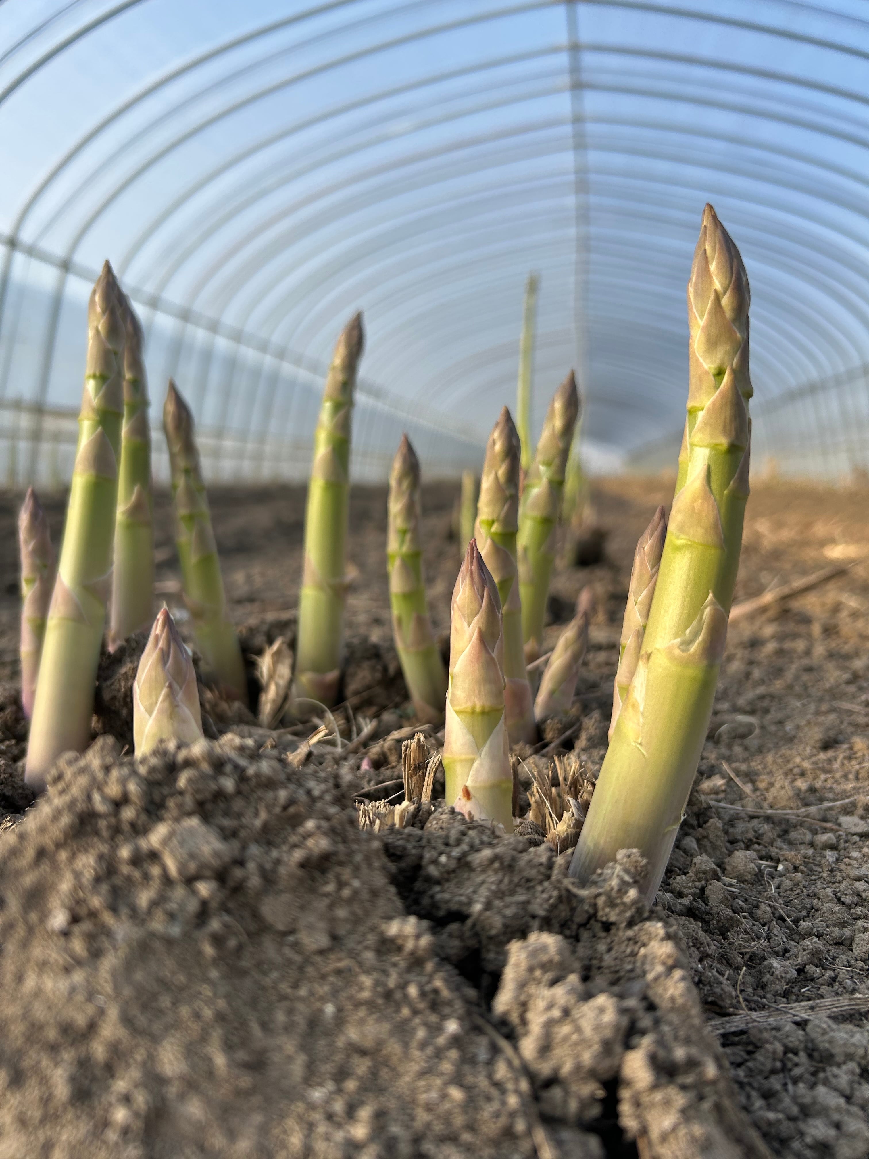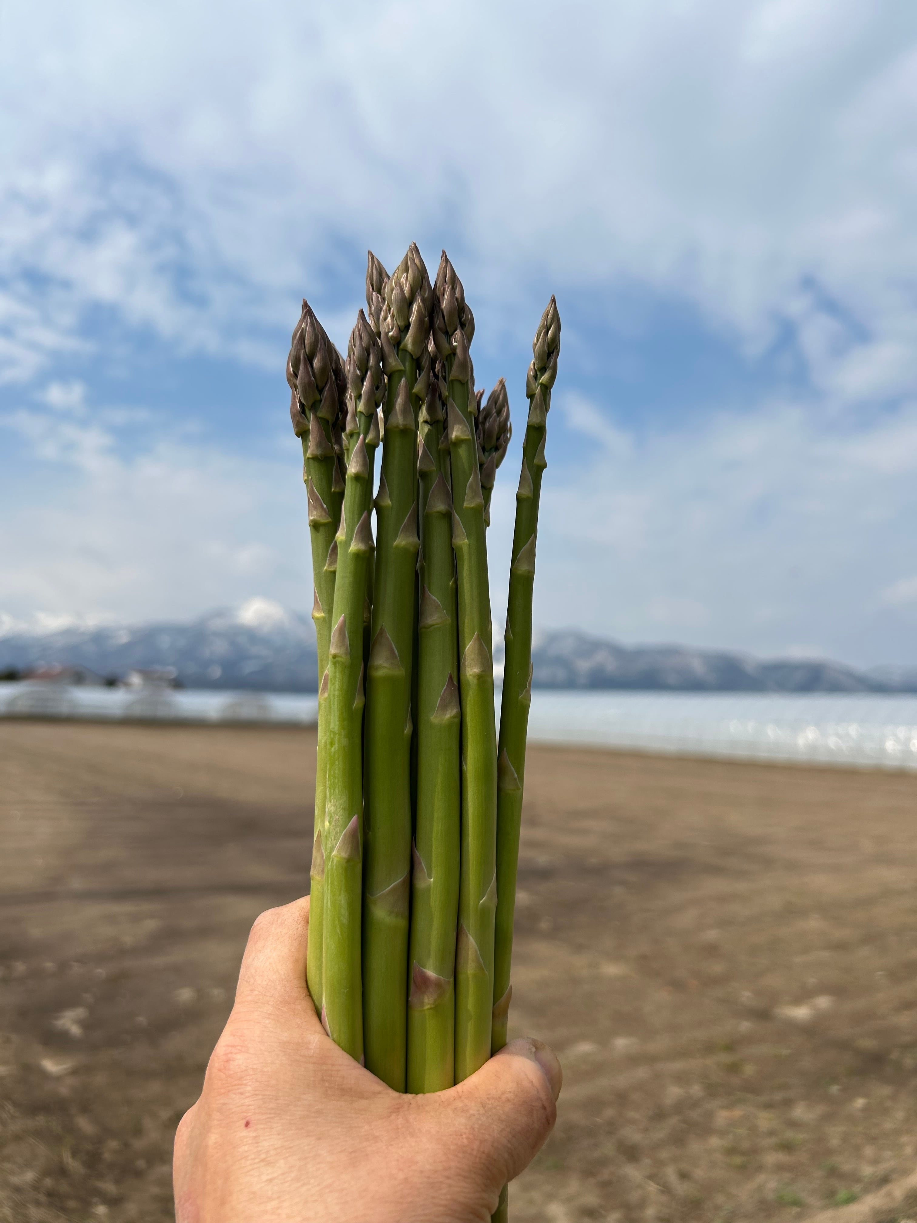 店主Naokoの三男坊Daisukeは、営農3年目となりました。季節限定(4月から6月中旬まで)で、丹精込めた朝採れフレッシュなアスパラを今春もお届けします。都会の物産展にも出品される最高のアスパラをぜひ食べてみてください。2026年のハウスアスパラは4月中旬より,、露地アスパラは5月中旬より販売・発送開始となります。初物は甘さも抜群!みずみずしい採れたてアスパラを、収穫した午後には鮮度と美味しさを保って発送します。1kg単位でのご注文となります。贅沢な美食の時間を、ぜひあなたのご家庭でお楽しみください。